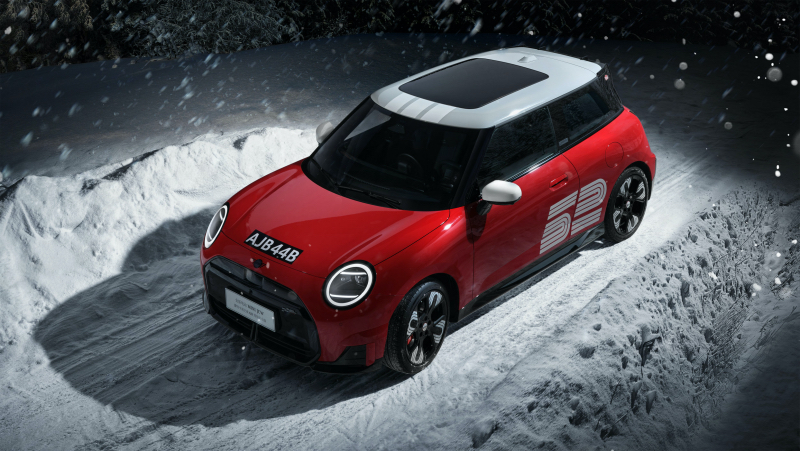 全球限量100台的全新电动MINI JCW蒙特卡洛之夜60周年纪念版本周上市,重现雪夜传奇。