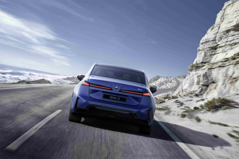 车尾设计则强调精准与科技感。醒目的水平尾灯向突出的肩线大幅延伸,延续并进化了经典的L型轮廓,不仅拉宽了视觉重心,更凸显了BMW 3系的独特个性。明显外扩的轮拱造型与立体式扩散器相互呼应,进一步烘托了新世代BMW i3充满力量感的运动姿态。