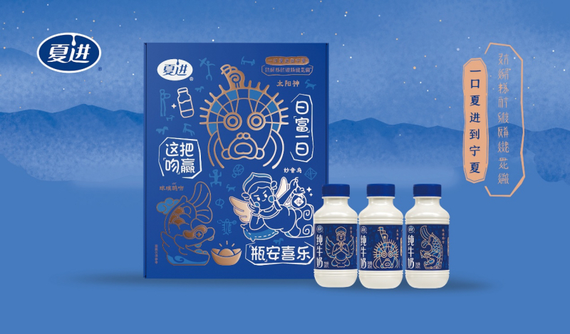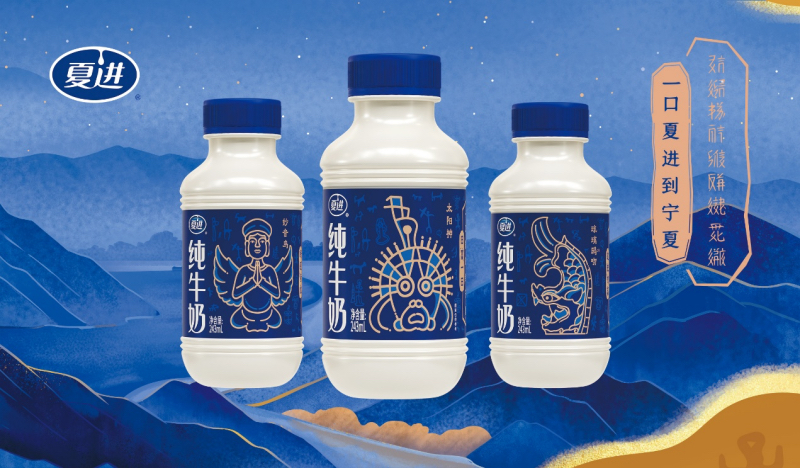 值得关注的是,此次活动的 “文化载体” 远不止快闪现场。夏进乳业推出的宁夏文物联名款瓶装纯牛奶,以“贺兰山太阳神”、“琉璃鸱吻”、“妙音鸟”三款文化IP为主形象,让消费在饮用夏进牛奶的同时,更能接触到宁夏独特的历史文化遗产。