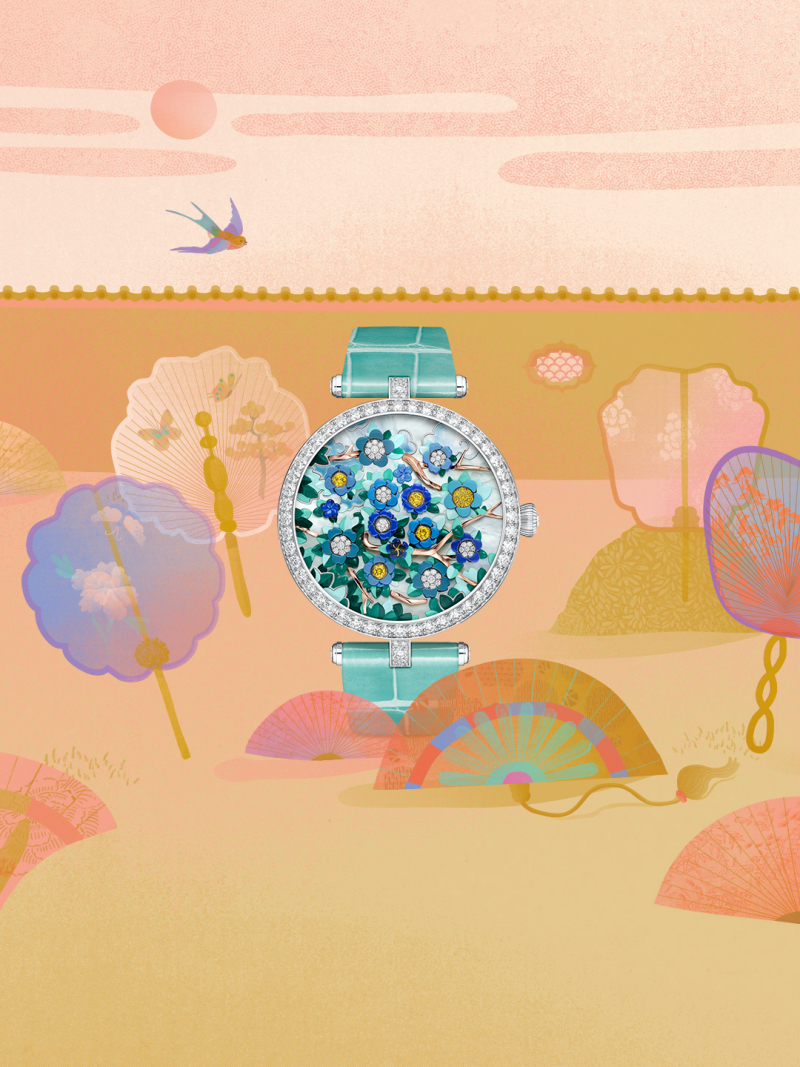 新岁启程,万物向春。Lady Arpels Heures Florales腕表从瑞典植物学家卡尔·冯·林耐(Carl von Linné)所载述的“花钟”(horologium orae)概念中汲取灵感,将时间化作一座悄然苏醒的花园,以诗意手法演绎荏苒时光。Van Cleef & Arpels梵克雅宝以此演绎时间与生命的和谐共鸣,让新春的温暖气息在流转光阴中悄然绽放。